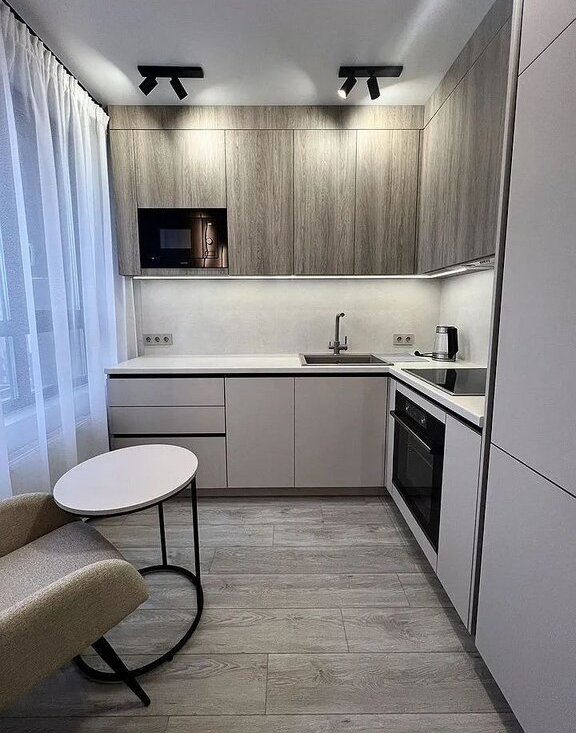 -Изолированная кухня, со всей необходимой техникой (холодильник, индукционная варочная панель, посудомойка, свч, духовой шкаф, вытяжка). Теплый пол.