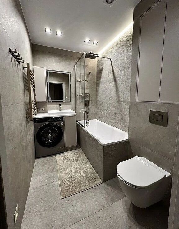 -Просторная ванная комната. Качественная стиральная машина, полотенцесушитель, датчик протечки воды, проточный водонагреватель. Теплый пол. Сантехника Grосеnbеrg.