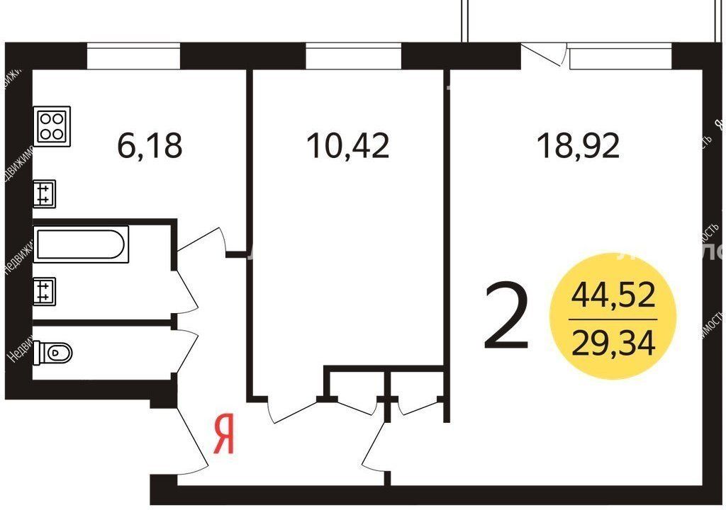 2-комнатная квартира: Москва, Днепропетровская улица, 5к4 (44.52 м²)
