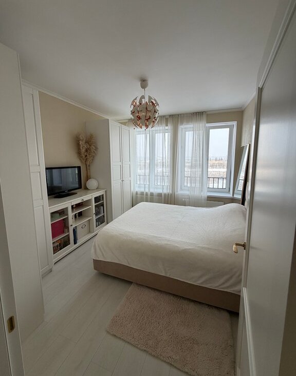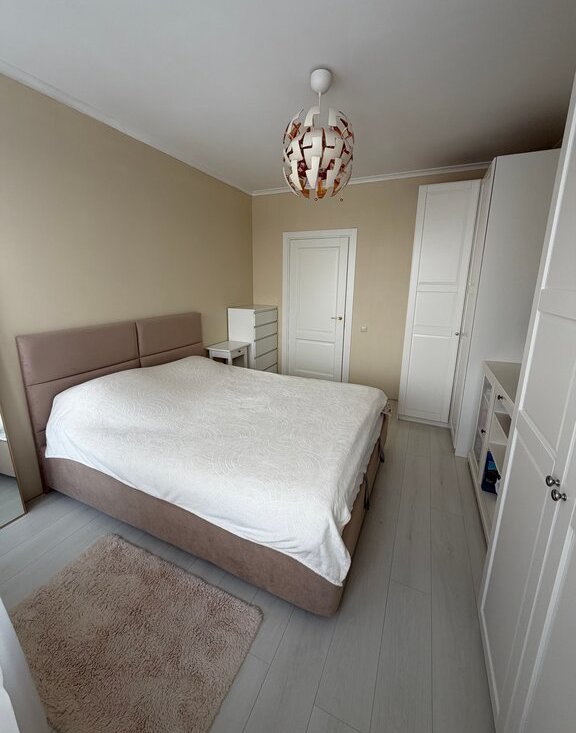 Отдельная спальня с продуманной системой хранения, при необходимости можно дополнить/изменить содержимое шкафов (полки, ящики, корзины). Кровать с подъемным механизмом и ортопедическим матрасом.