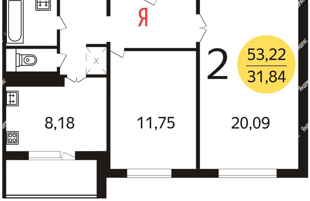2-комнатная квартира: Москва, Дорожная улица, 18к1 (53.22 м²)