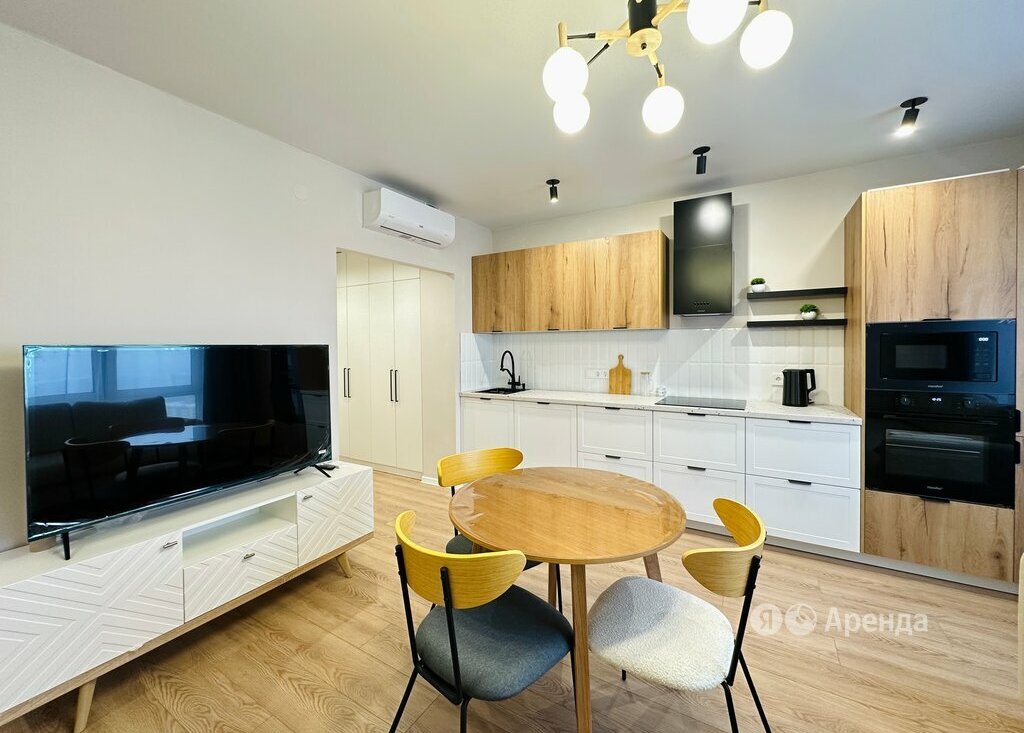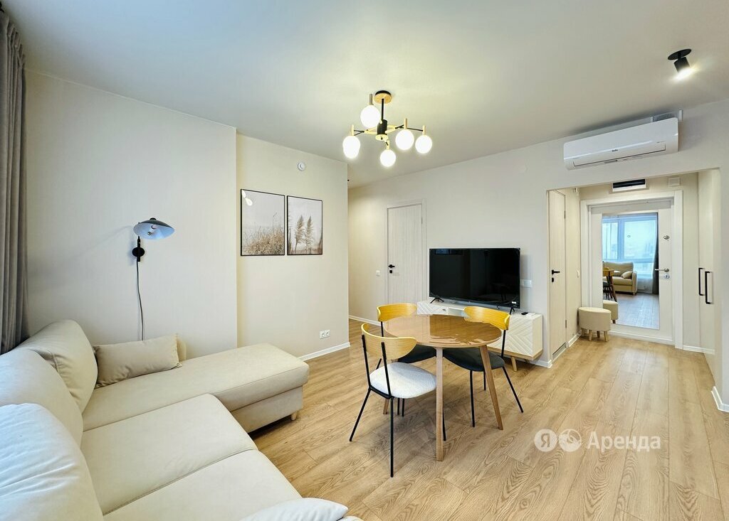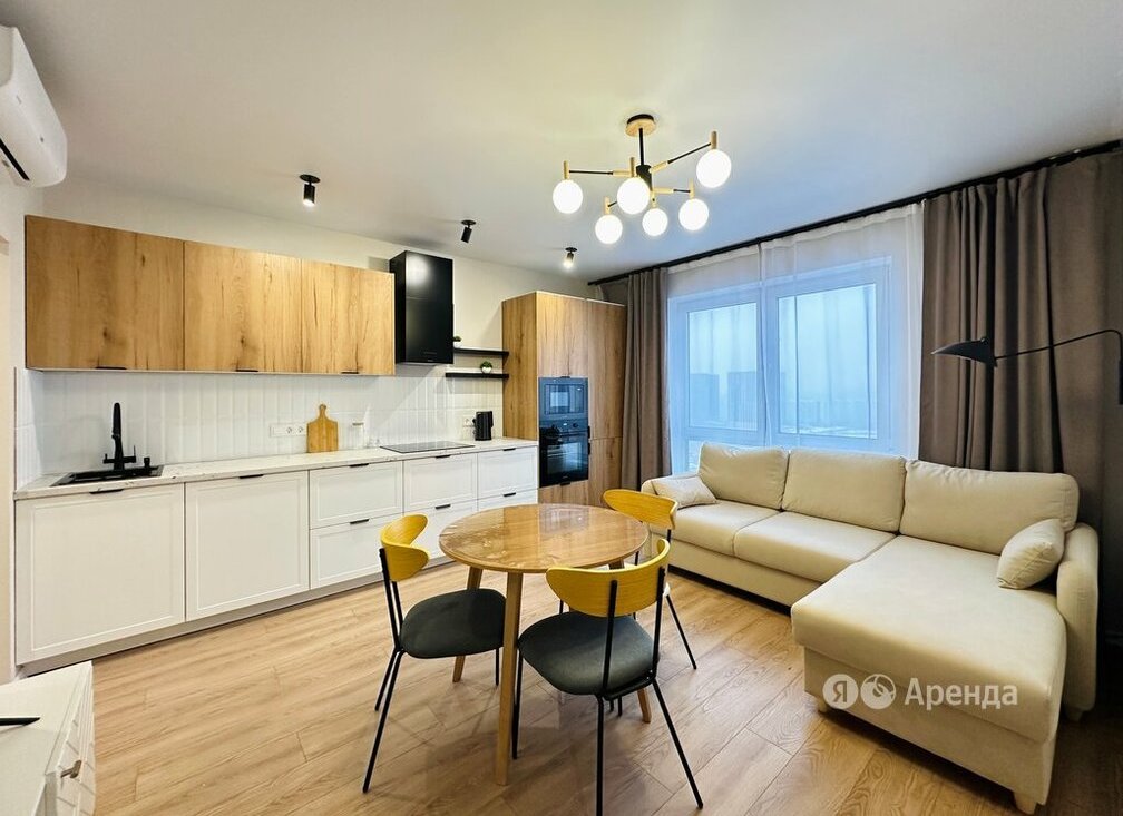 Сдаётся 2-комнатная квартира площадью 50 кв.м. с дизайнерским ремонтом на 27 этаже в 33-этажном доме на срок от 11 месяцев. Из техники есть: