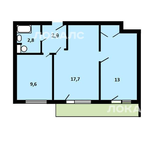 Есть просторная застекленная лоджия, совмещенный санузел с ванной.