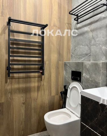 В санузле новая сантехника, теплый пол, стиральная машина и электрический полотенцесушитель.
