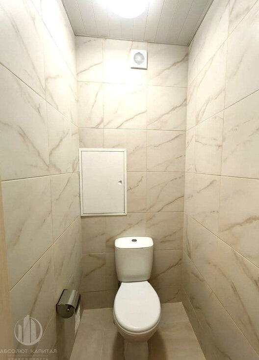 Эстетичная ванная: отделка под мрамор и продуманные зоны хранения.