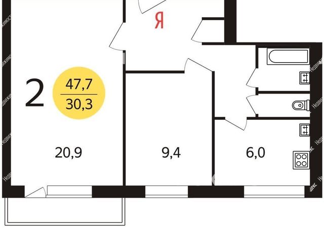 2-комнатная квартира: Москва, Хабаровская улица, 21 (51 м²)