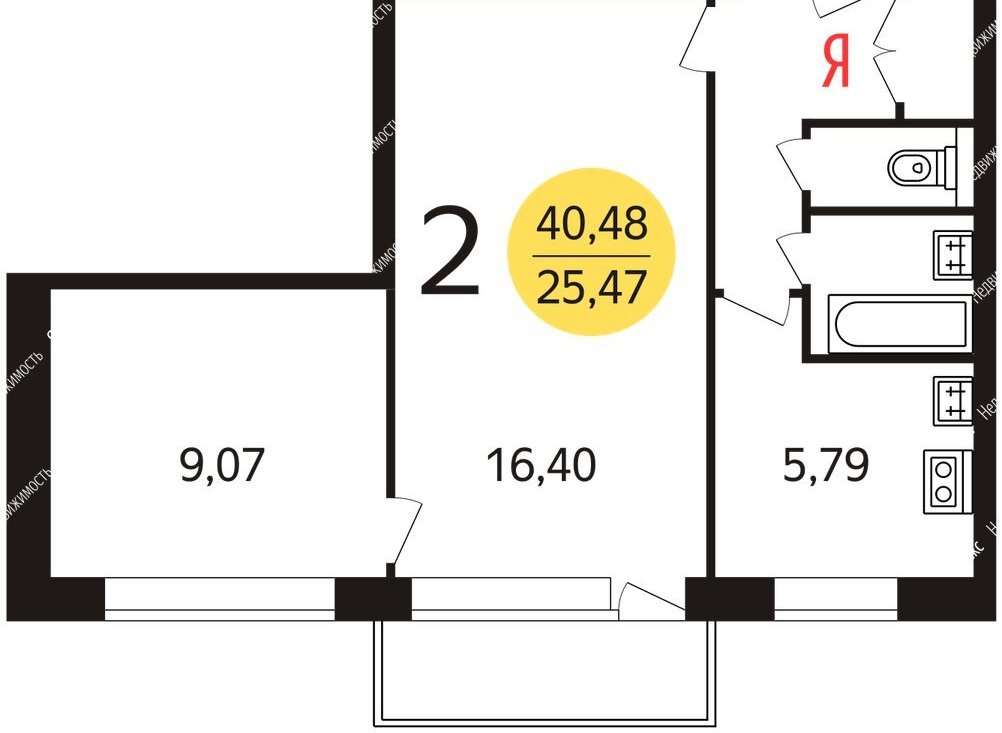 2-комнатная квартира: Москва, Херсонская улица, 26к2 (40.48 м²)