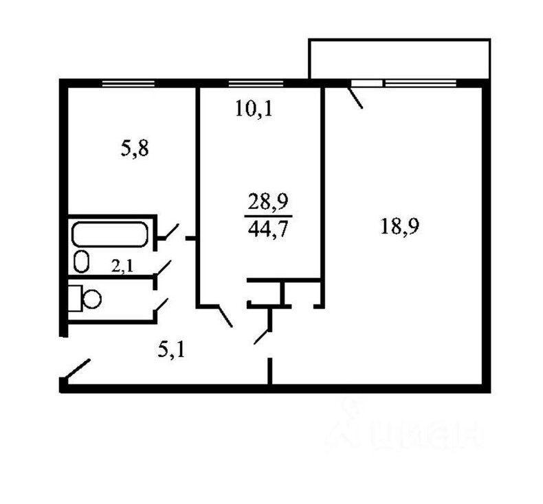 2-комнатная квартира: Москва, Химкинский бульвар, 6 (44 м²)
