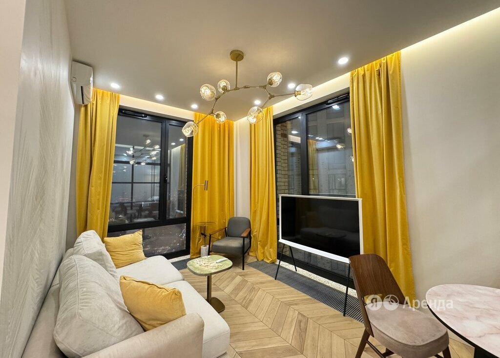 Сдаётся 2-комнатная квартира площадью 50 кв.м. с дизайнерским ремонтом на 40 этаже в 44-этажном доме на срок от 11 месяцев. Из техники есть:
