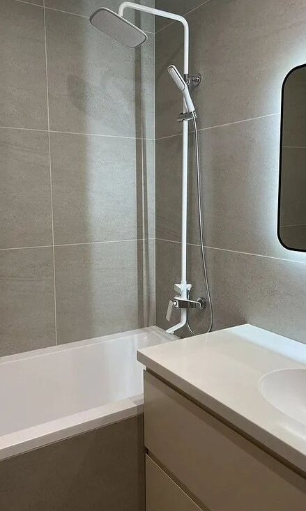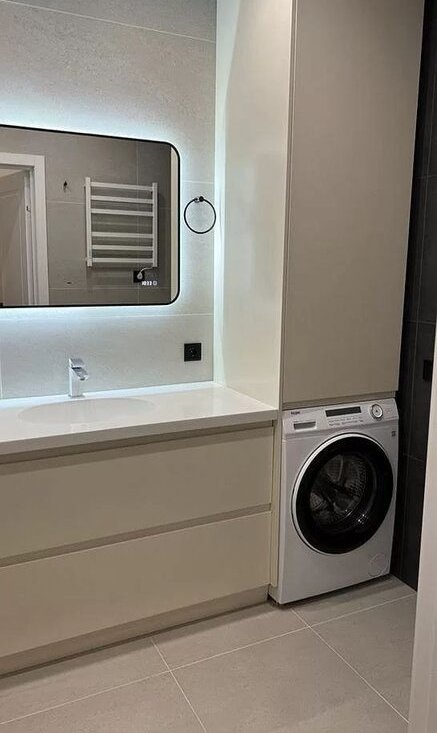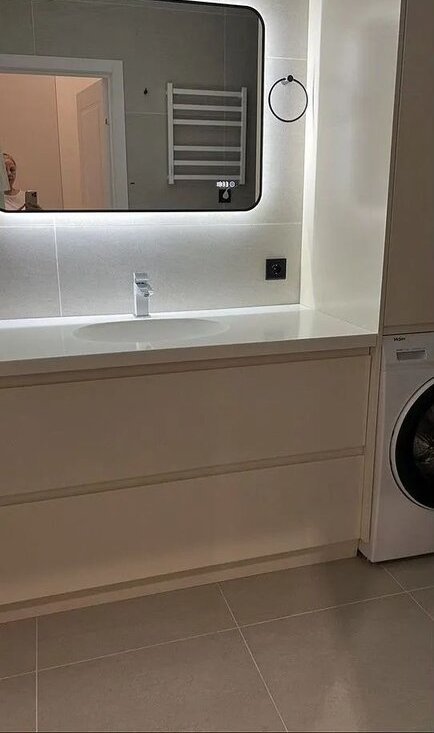 В квартире дорогой ремонт, есть кухня и рабочая зона. Есть вся техника: плита, духовой шкаф, встроенный холодильник, посудомоечная машинка, микроволновая печь, фильтр воды, стиральная машинка, сплит система.Просторная ванная комната с ванной, теплый пол.