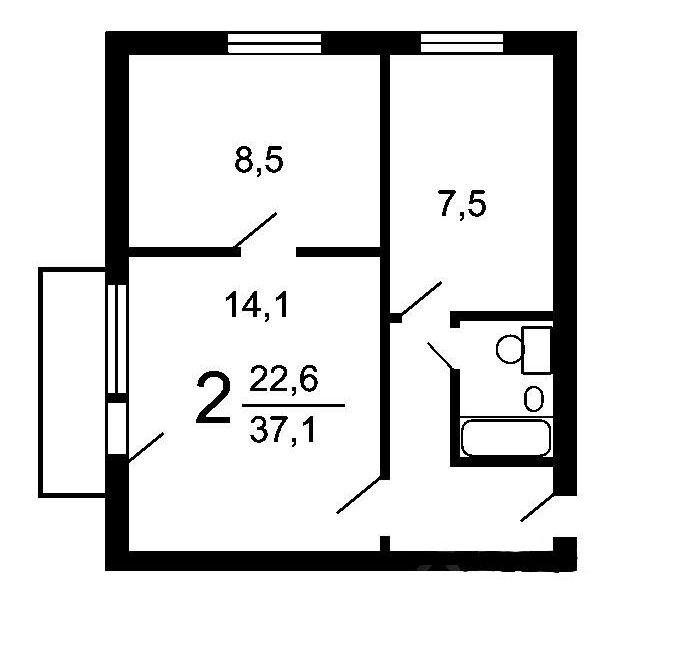 2-комнатная квартира: Москва, Каширское шоссе, 26к3 (37 м²)