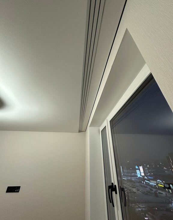 🔹Установлены натяжные потолки с теневым профилем (парящие);