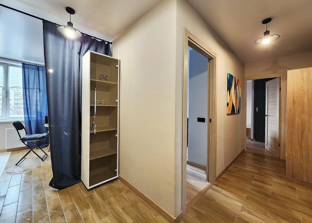 🛋️Из мебели и техники: диван и кровать 140×200. (диван готова заменить на кровать или другой диван), комод, два встроенных шкафа в комнатах и один обычный в коридоре, холодильник, стиральная и посудомоечная машины, газовая плита , микроволновка, телевизор, утюг, пылесос, сушилка, гладильная доска, стол, стулья , табуретки. Если критично наличие духовки, можем обсудить установку.