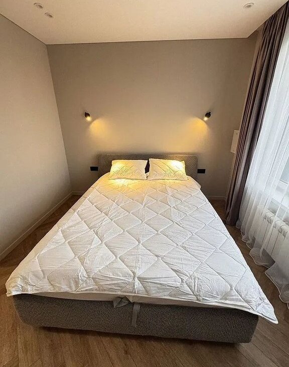 В спальне большая кровать и вместительный шкаф. В квартире есть кабельное/цифровое ТВ. Санузел совмещенный, выполнен в современном стиле с качественной сантехникой.