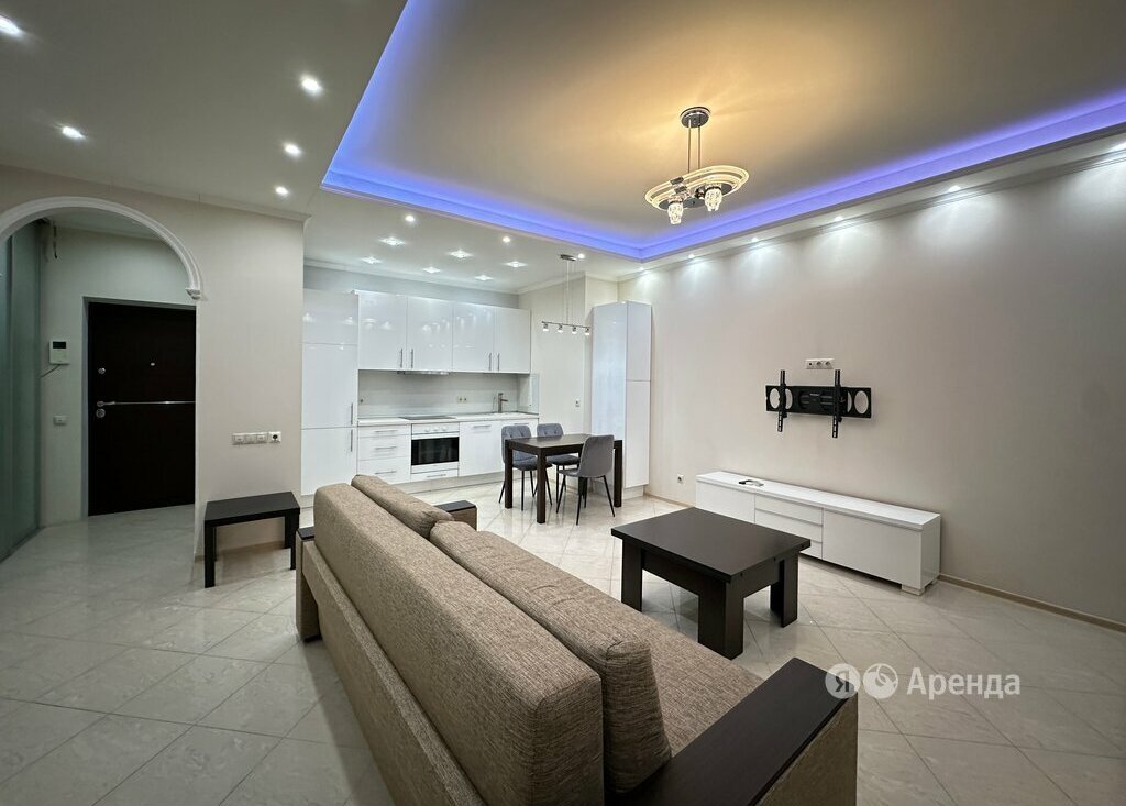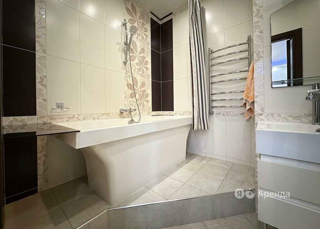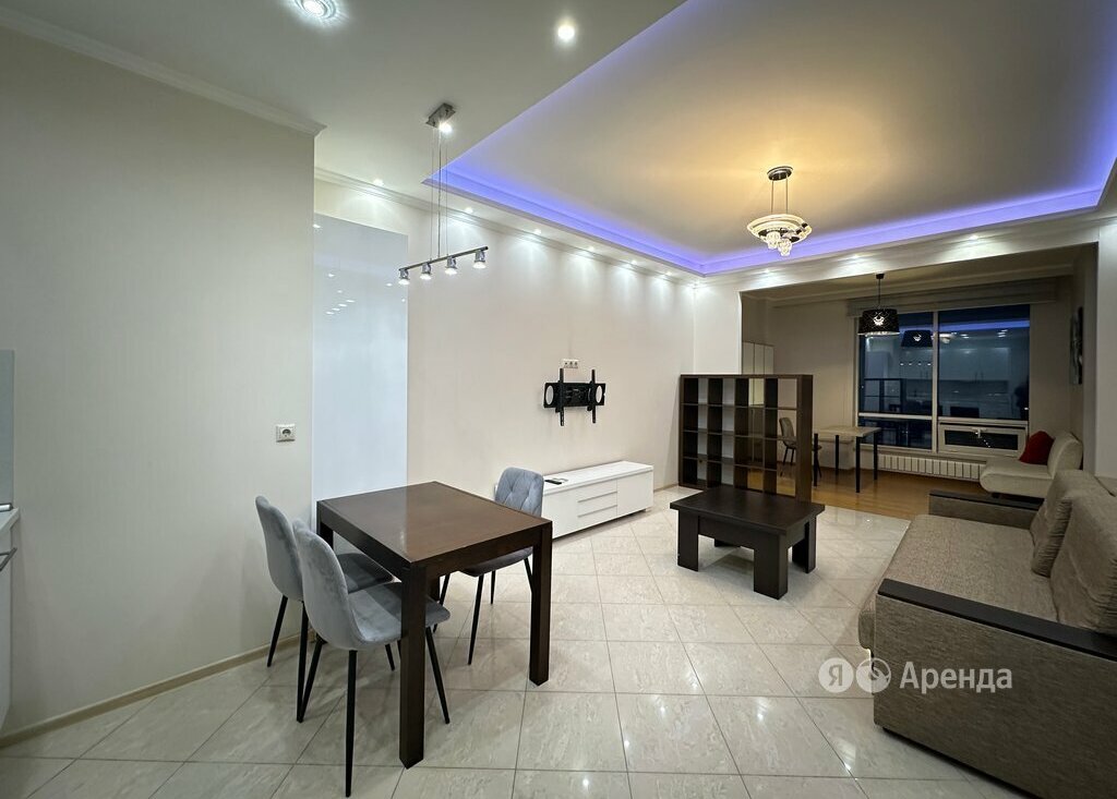 Сдаётся 2-комнатная квартира площадью 66 кв.м. с дизайнерским ремонтом на 27 этаже в 34-этажном доме на срок от 11 месяцев. Из техники есть: