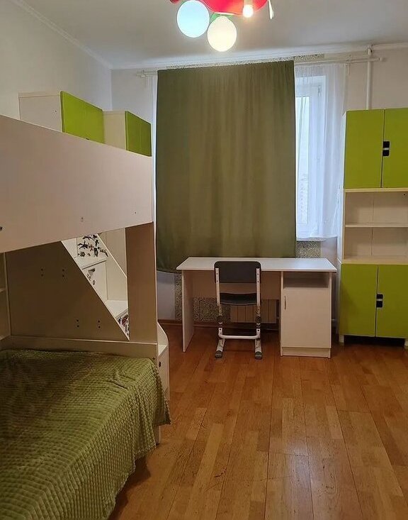 Все комнаты изолированы. В одной комнате кондиционер, двухспальная кровать , диван(разбирается), шкаф-купе. Вторая комната оборудована под детскую, двухъярусная кровать полноценная, шкафы, письменный стол. Много ящиков для хранения)