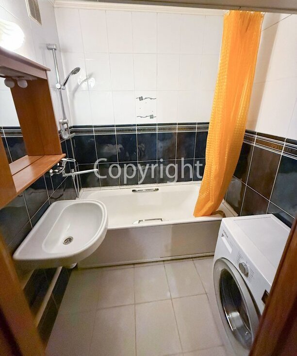 Ванная: стиральная машинка, раковина, навесной шкаф с зеркалом и подсветкой, ванная. Су раздельный.