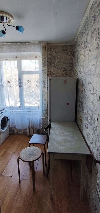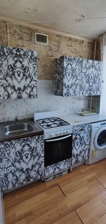 Окна выходят во двор, поэтому в квартире всегда тихо и спокойно. Из мебели и техники есть всё необходимое: на кухне — гарнитур и обеденный стол, в комнате — удобный диван и шкафы. Из техники — холодильник и стиральная машина. Ванная комната оборудована полноценной ванной.
