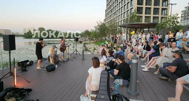 1,5 км прогулочной набережной вдоль Москвы-реки, вело и беговые дорожки, зоны отдыха,
