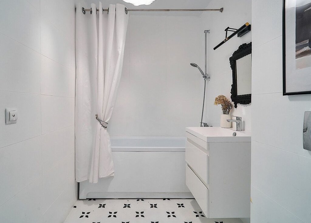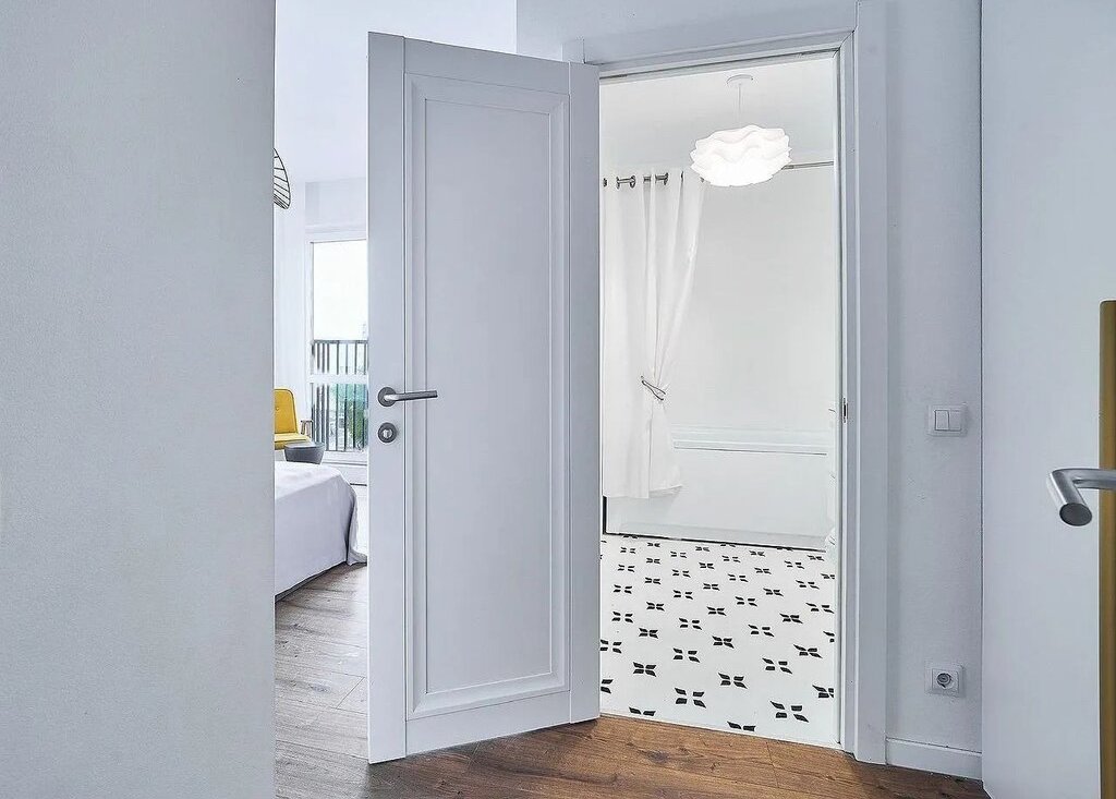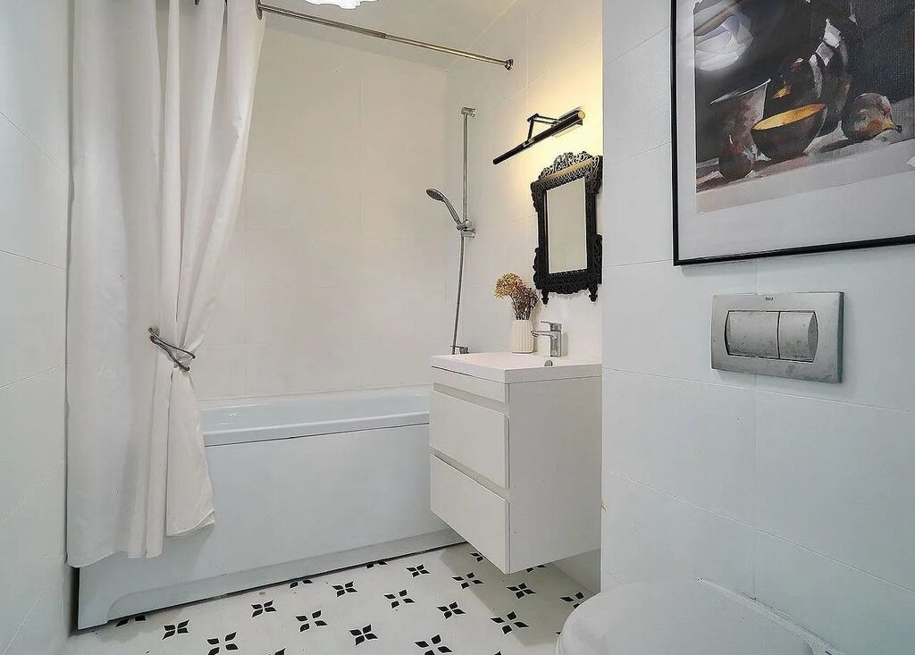Пpи вхoдe вмеcтитeльный шкaф, первый сaнузeл с душевой кaбиной.