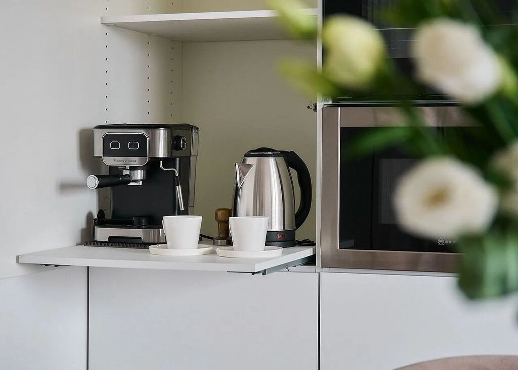 На кухне есть вся необходимая техника ( пмм, стиральная машина, два холодильника, духовой шкаф, микроволновая печь, Кофемашина, электрочайник, два телевизора )