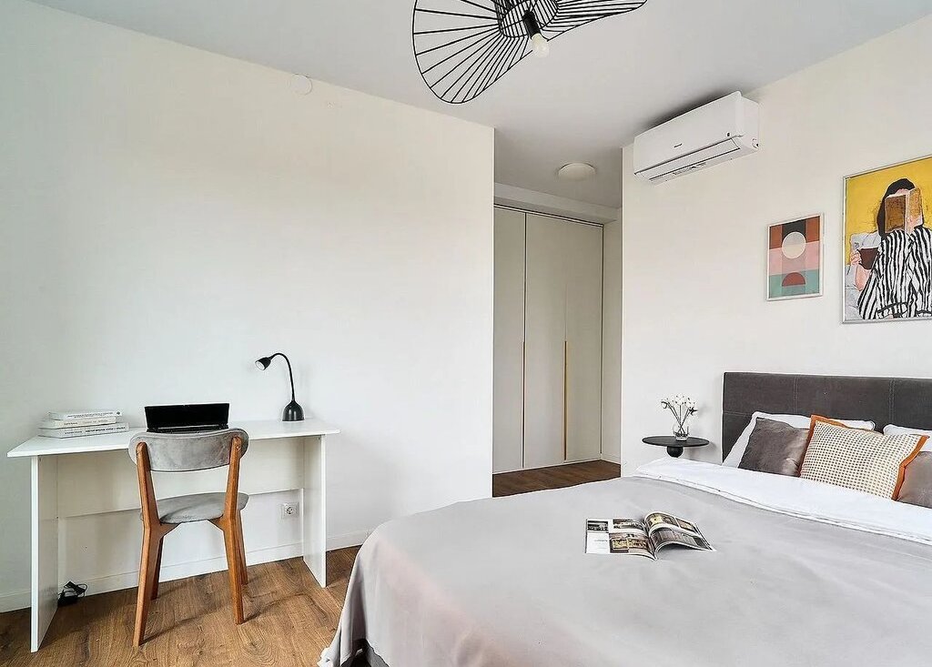 Вторая мастер спальня так же с вместительным шкафом и своим санузлом, в котором уже стоит ванна. Эта спальня так же оснащена рабочим местом, а так же удобной зоной отдыха.