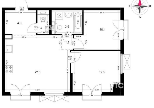 2-комнатная квартира: Москва, Красноказарменная улица, 15к4 (56 м²)