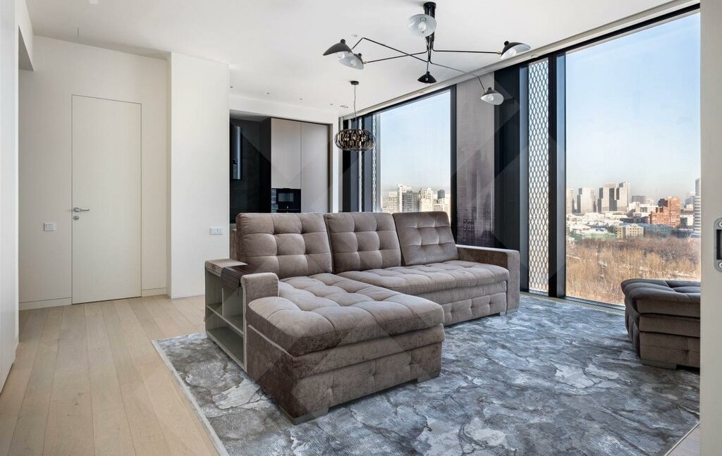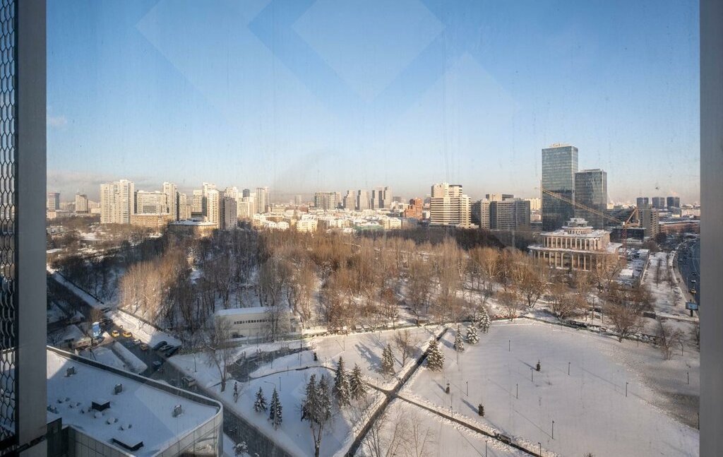 Панорамные виды из окон квартиры выходят на красивые пейзажи парка и реки и лишены каких-либо препятствий.