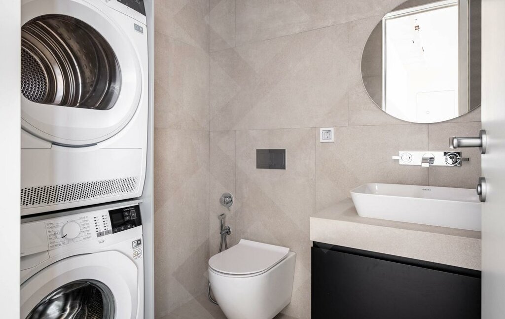 Две ванных комнаты оснащены немецкой сантехникой и аксессуарами фирмы Grohe, а также шведской стиральной и сушильной машиной.