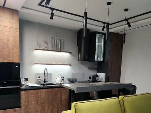 Вся необходимая мебель и техника есть. Кухня большая со столовой зоной, есть посудомоечная машина, плита, духовой шкаф. Дом огорожен и охраняется круглосуточно.