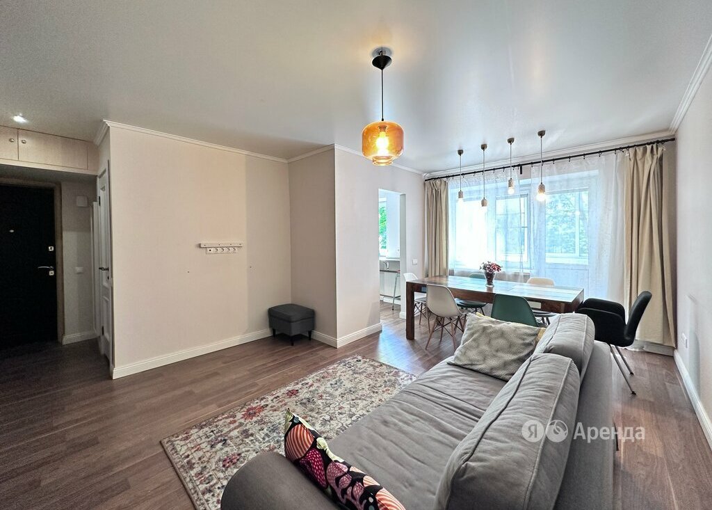 Сдаётся 2-комнатная квартира площадью 46 кв.м. с дизайнерским ремонтом на 3 этаже в 5-этажном доме на срок от 11 месяцев. Из техники есть: