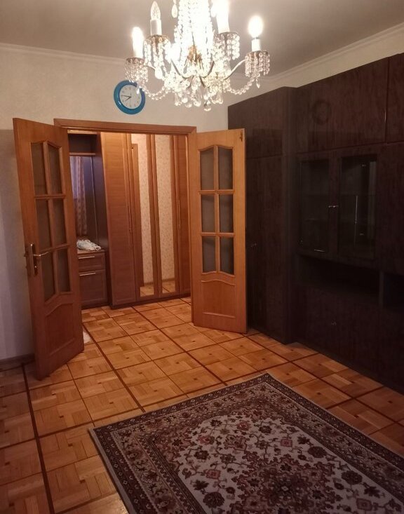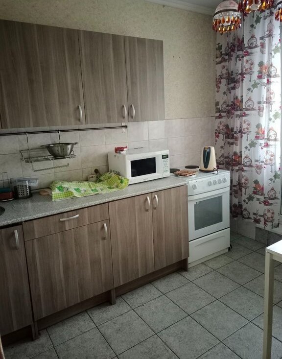 В квартире есть вся необходимая мебель: кухонный гарнитур, обеденный стол, стенка и раскладной диван в гостиной, кровать и шкаф в спальне, а также техника: холодильник, плита с духовкой, микроволновка и стиральная машина. При необходимости, можно решить вопрос о дополнительной мебели.