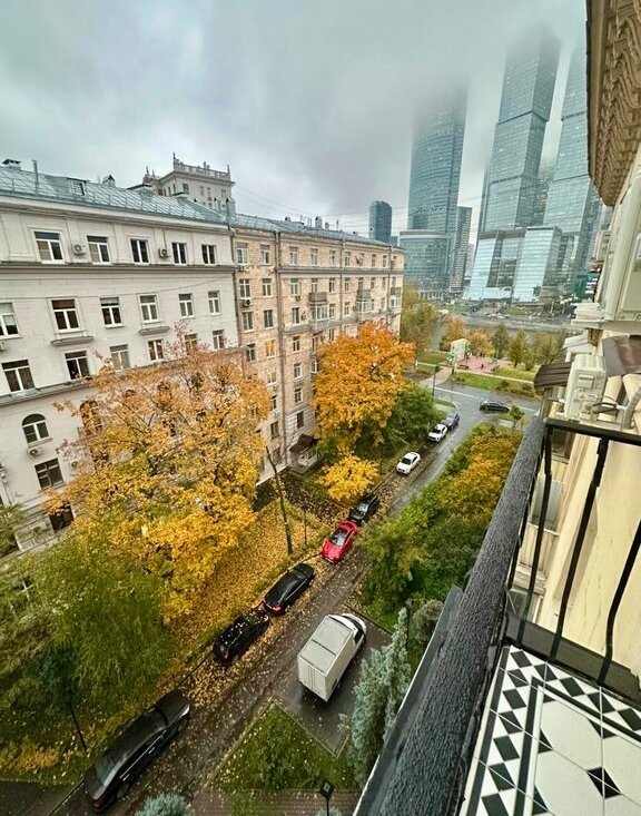 Дом на набережной Москвы-реки. Окна на сквер. На Кутузовском проспекте таких статусных домов всего 7. Квартира находится не в пристройке, а в исторической части здания. Проект знаменитого архитектора З.М. Розенфельда. Перекрытия железобетонные. Этот номенклатурный дом — возводился для партийной элиты, высшего командного состава армии, выдающихся учёных и деятелей культуры (среди жильцов были: Сергей Герасимов, Тамара Макарова, Валентин Гафт).