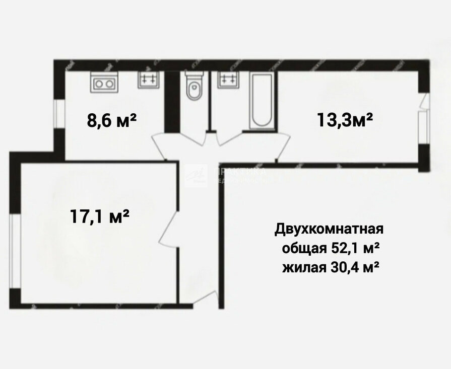 2-комнатная квартира: Москва, Лебедянская улица, 23 (52.1 м²)