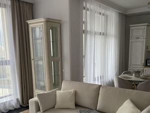 Квартира полностью меблирована и готова к проживанию. Уютная гостиная с телевизором и камином, в которой приятно отдохнуть после рабочего дня.