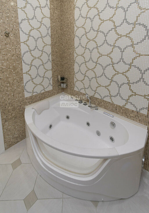 -Мастер-спальня с отдельным санузлом (гидромассажная ванна, стиральная машинка Bosch и электрическим водонагревателем Thermex). Отделка стен из натурального камня с авторским мозаичным панно.