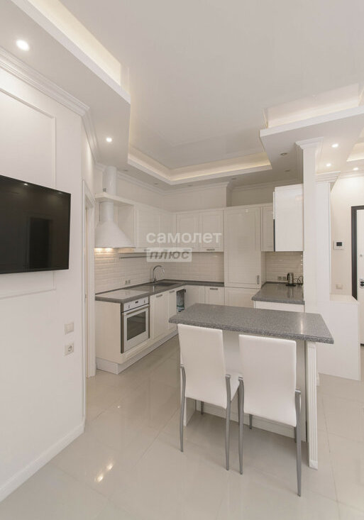 -Просторная Кухня-гостиная (23 м²), есть вся бытовая техника (кухонный гарнитур Kuchenberg, встроенная кухонная техника Neff варочная панель, духовой шкаф, холодильник, посудомоечная машина, встроенная СВЧ Bosch).