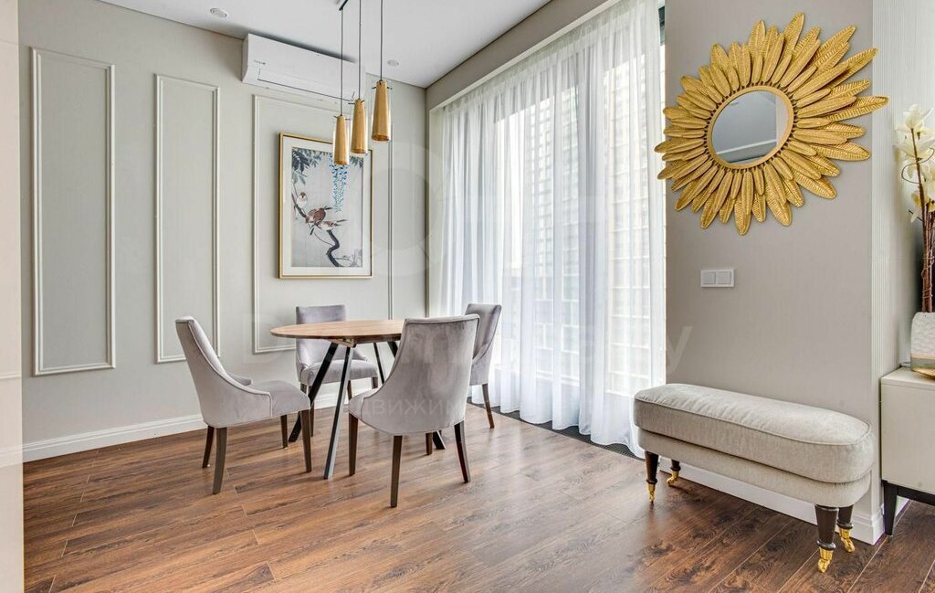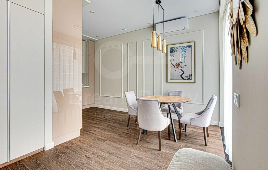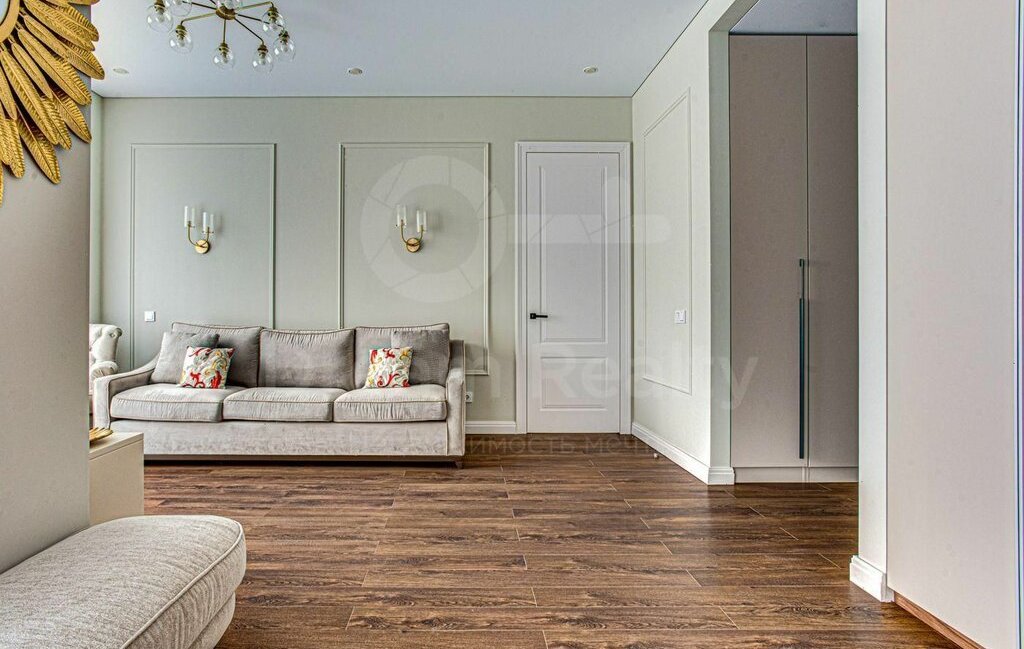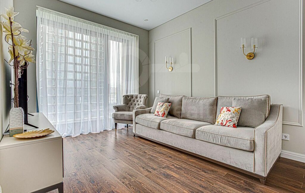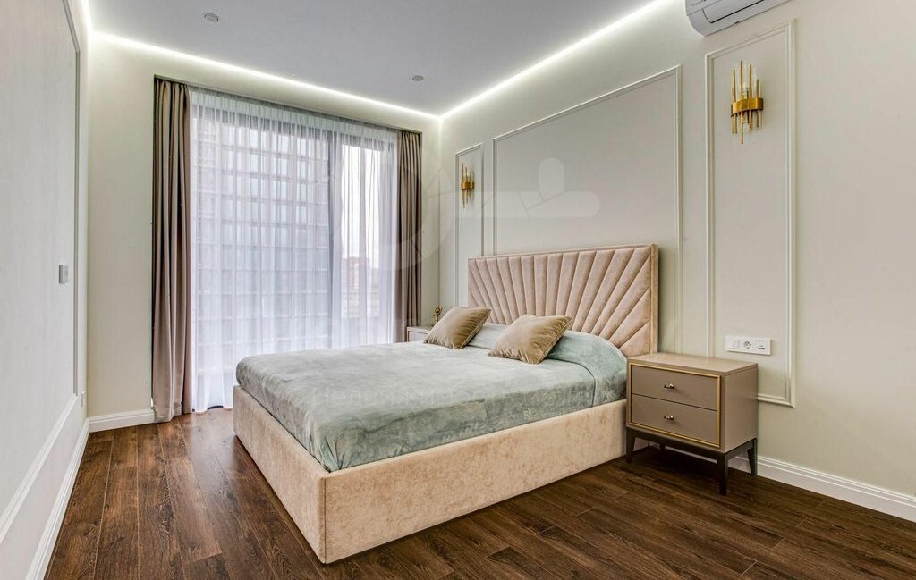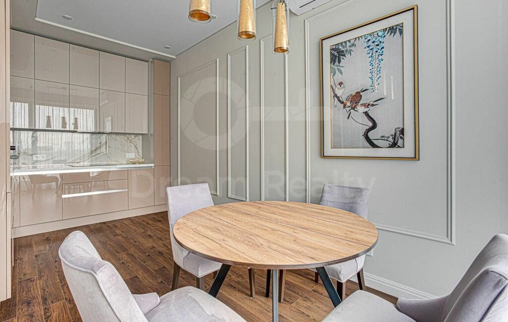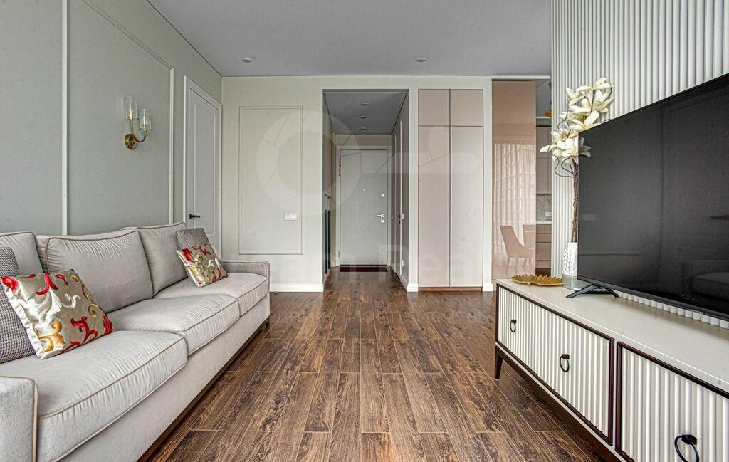 Общая площадь 64 кв.м. Функциональная планировка: спальня, уютная гостиная, кухня с выделенной столовой зоной, ванная комната, гостевой санузел и гардеробная.