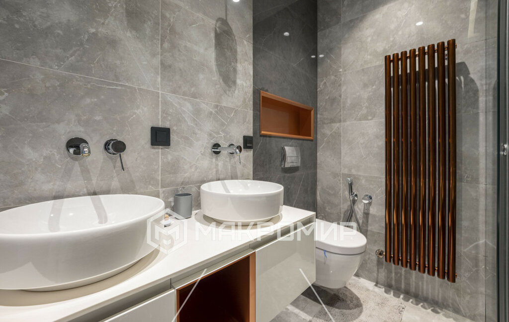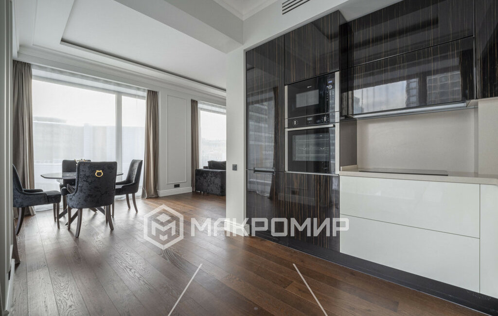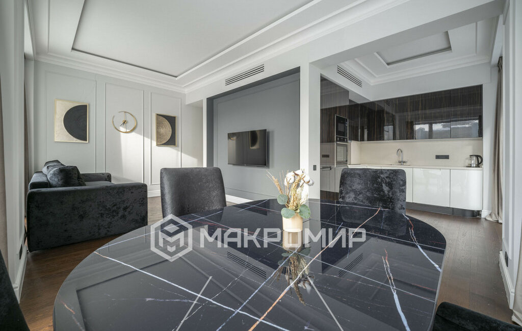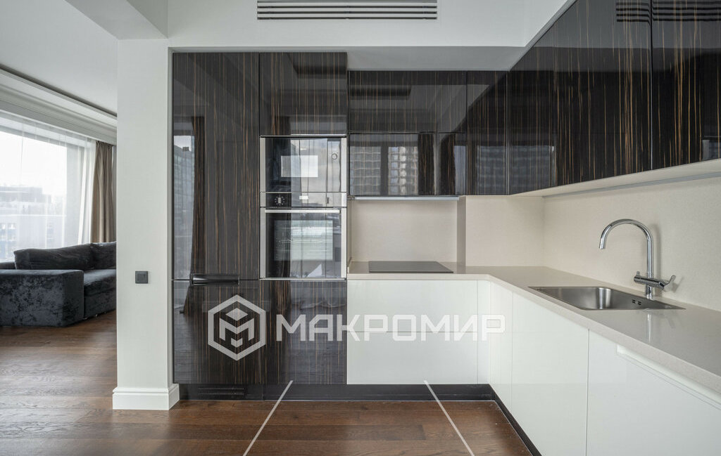Глянцевая кухня деликатно спрятана в глубине гостиной, чтобы утренний завтрак оставался только вашей историей. Мягкий серый диван, круглый стол и кремовые кресла ждут ваших вечеров. Воздух здесь пахнет новизной — в этой квартире ещё никто не жил.