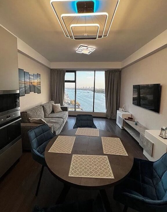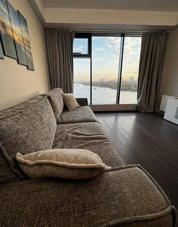 В квартире качественный ремонт: панорамные окна на Москва-реку, полностью укомплектована современной мебелью и бытовой техникой.