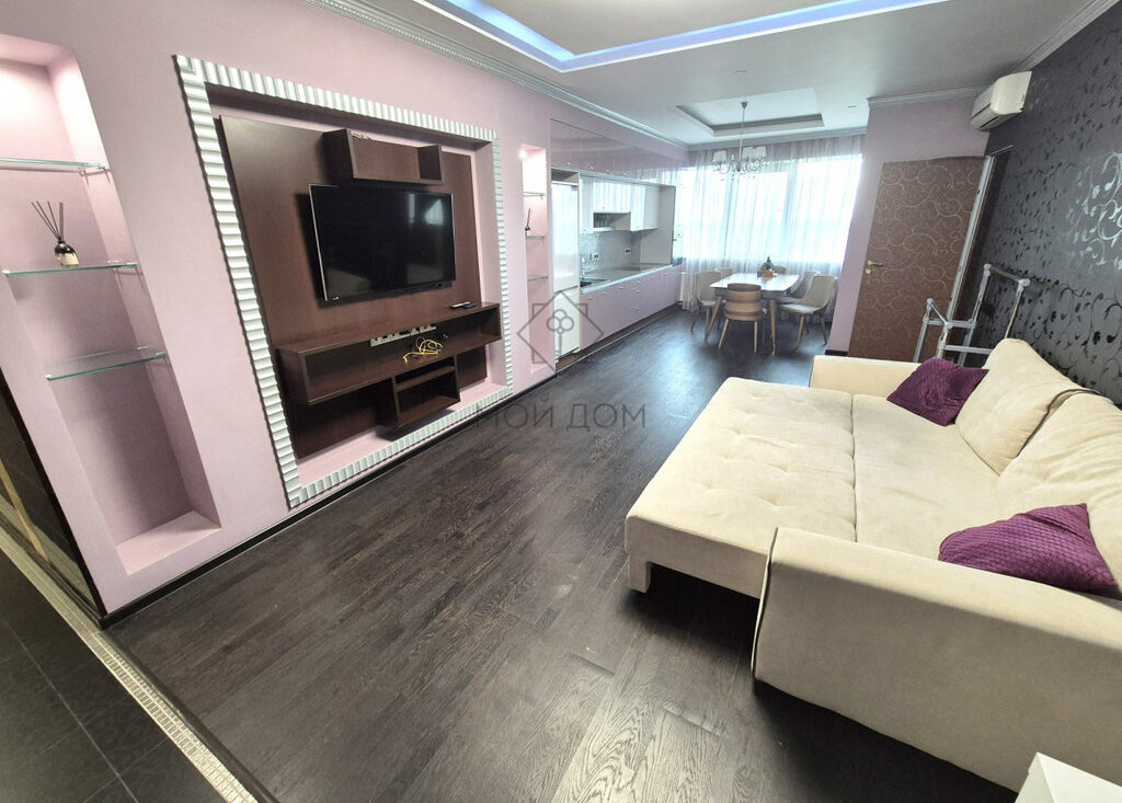 ЖК Велл хаус. Сдается современная, стильная 2-х комнатная квартира. Великолепный Панорамный вид. Планировка квартиры: гостиная объединена с кухней, вторая комната - спальня.Дизайн ремонт из высококачественных материалов. Квартира укомплектована необходимым оборудованием, техникой и мебелью : стиральная машина, холодильник, ТВ, варочная панель, духовой шкаф, посудомоечная машина, кондиционер. 2-ва сан-узла,гардеробная комната. В доме имеется подземный паркинг, а также фитнесс клуб, рестораны, салон красоты, продуктовый магазин. Квартира сдается длительный срок.
