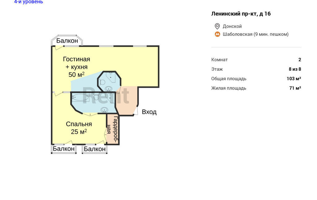 2-комнатная квартира: Москва, Ленинский проспект, 16 (103 м²)