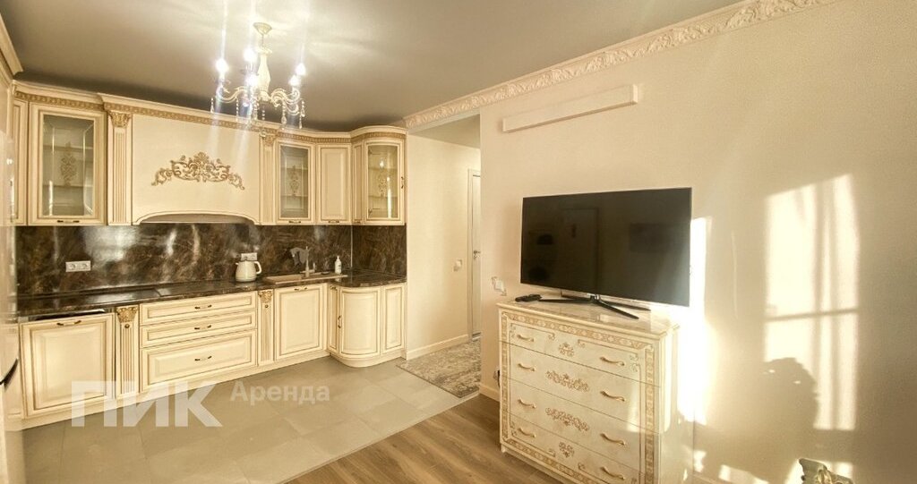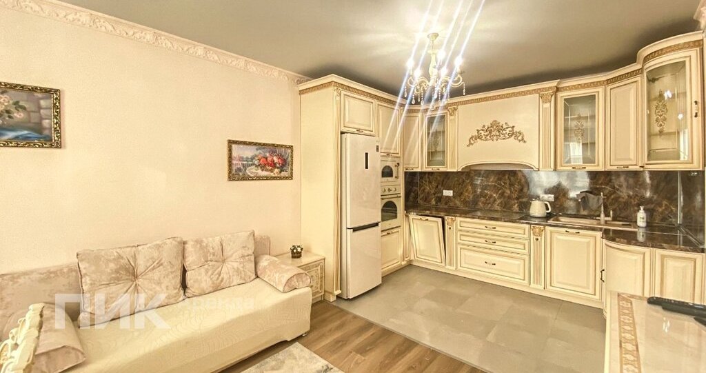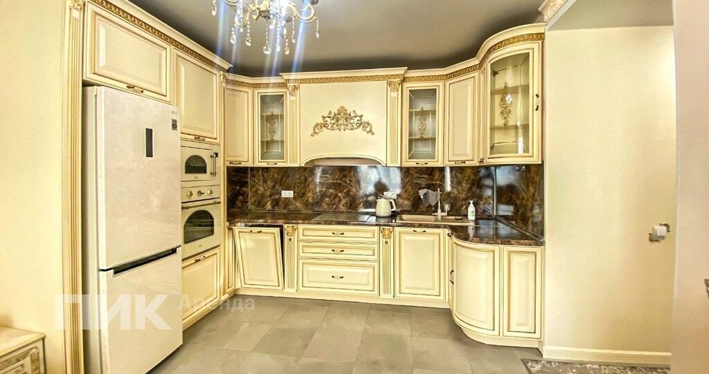 Квартира оборудована кухонным гарнитуром, мебелью и бытовой техникой. Есть: