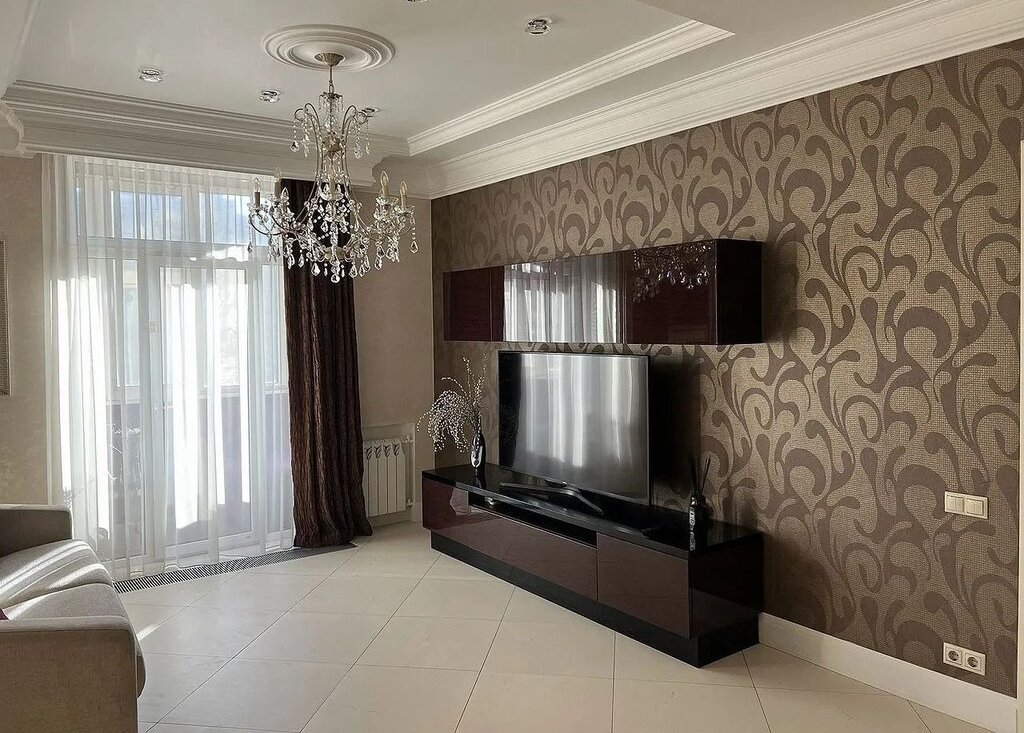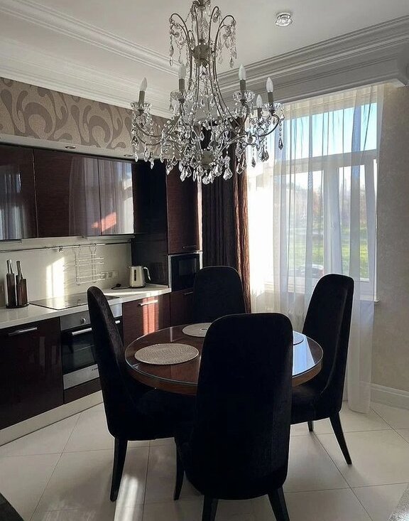 Прoстpанcтвo кваpтиpы продуманo дo мелочей: кухня-гоcтиная с обeденной и лаунж-зоной перед телевизором и выходом на балкон, уютная спальня для сна и отдыха с вместительной гардеробной комнатой, темная комната- кабинет, просторный санузел, застекленный и отделанный балкон с зоной отдыха.