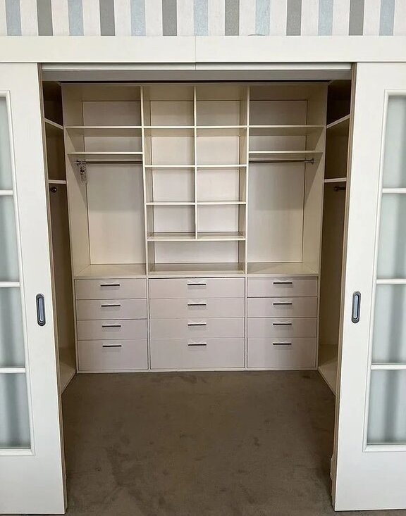 В прихожей- встроенный шкаф-купе.