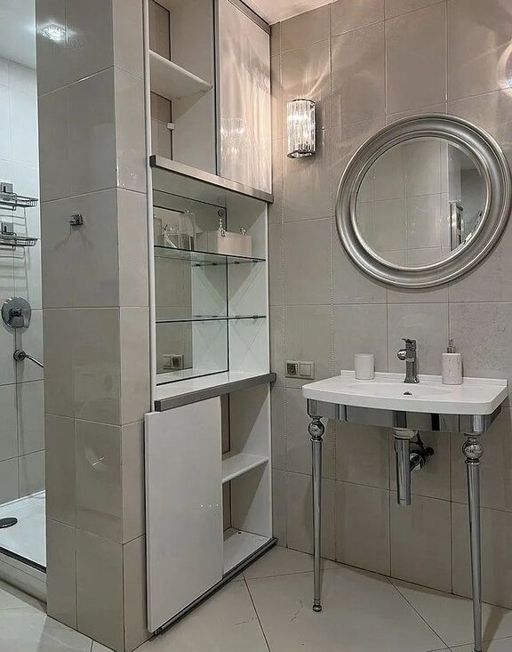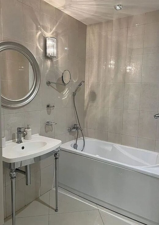 Совмещенный санузел с ванной и душевой кабиной, стиральная машина-автомат, бойлер