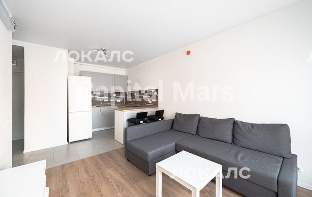 Предлагается двухкомнатная квартира в ЖК "Люблинский парк". Гостиная меблирована мягким диваном, кухонная зона оснащена стильным гарнитуром и холодильником. Обустроена уютная спальня. Установлена стиральная машина. Окна выходят во двор, обеспечивая тишину.