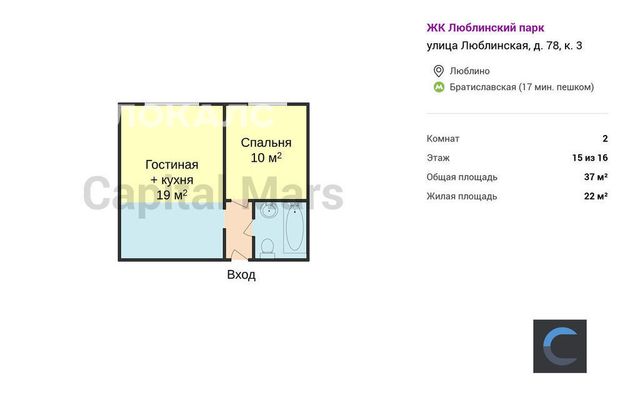 2-комнатная квартира: Москва, Люблинская улица, 78к3 (37 м²)