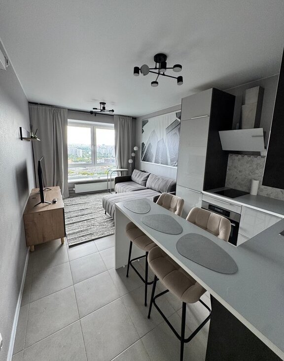 Сдаётся на длительный срок стильная, видовая евро-двушка 43 кв. м. с евроремонтом, 24й этаж , большие окна ( почти понарама ) шикарный вид! ( НЕ окнана в окна )