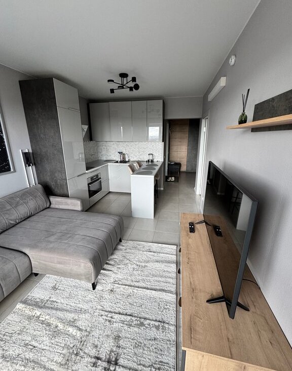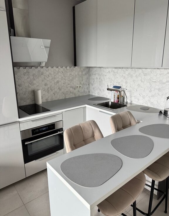 В квартире установлена встроенная кухня, вся необходимая техника (+ стиральная машина, посудомоечная машина, кондиционер).